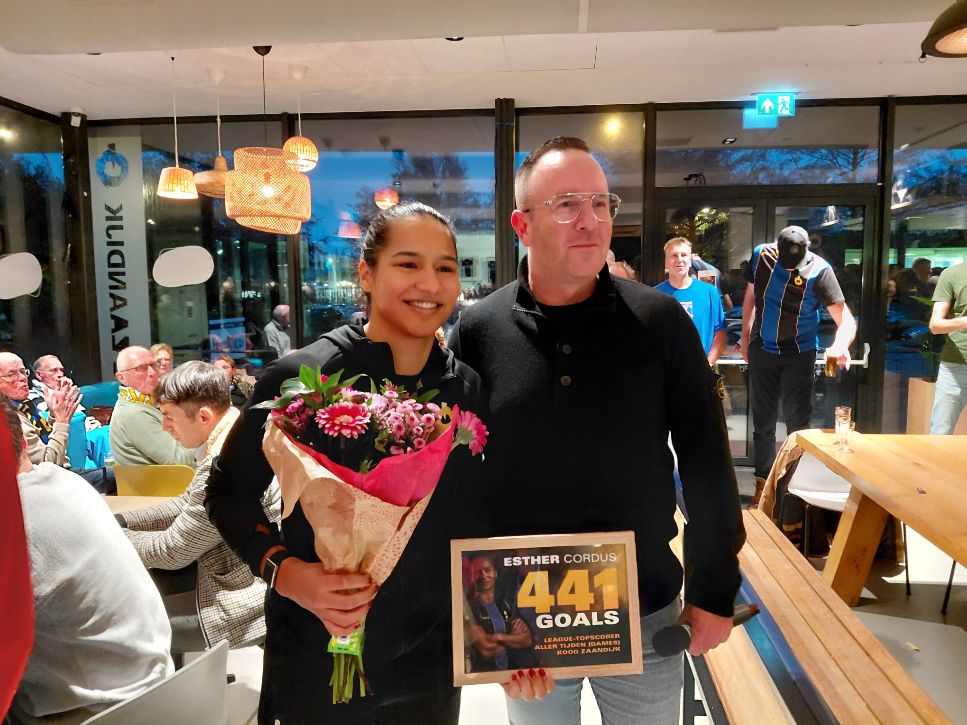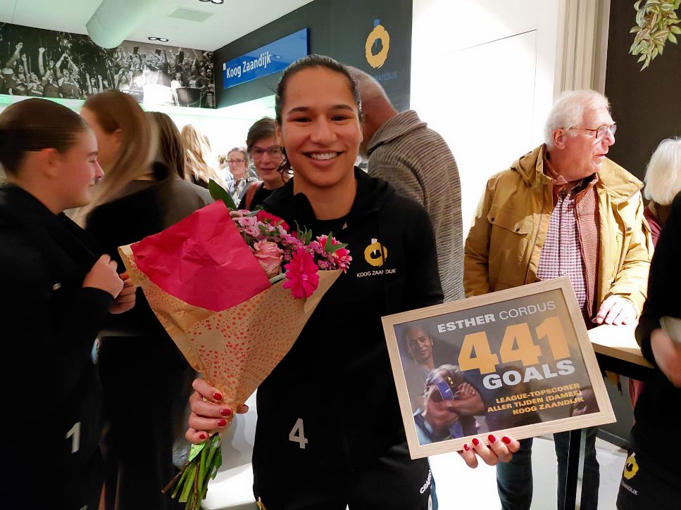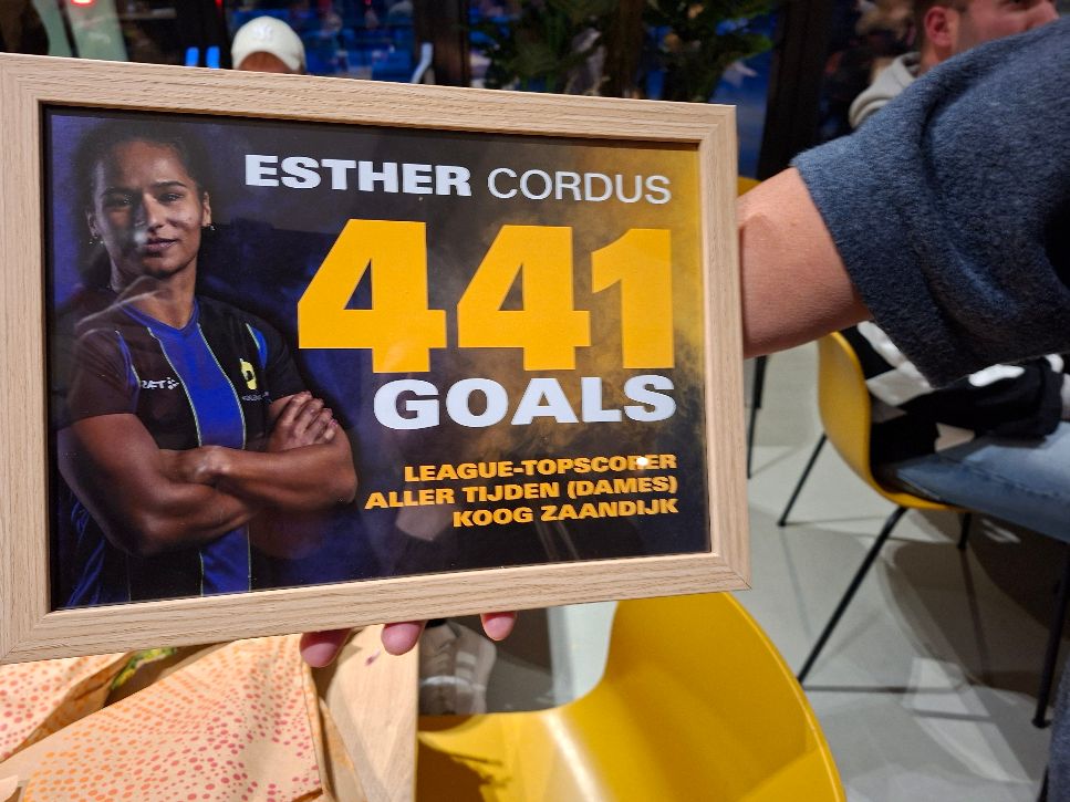 Ze maakte vandaag, 23 november 2025, haar 441e doelpunt voor KZ in de Korfbal League. Daarmee haalt ze Roxanne Detering in. Een knaller van een wedstrijd eindigt in 25-24. Na de wedstrijd werd Esther nog in de bloemetjes gezet.
